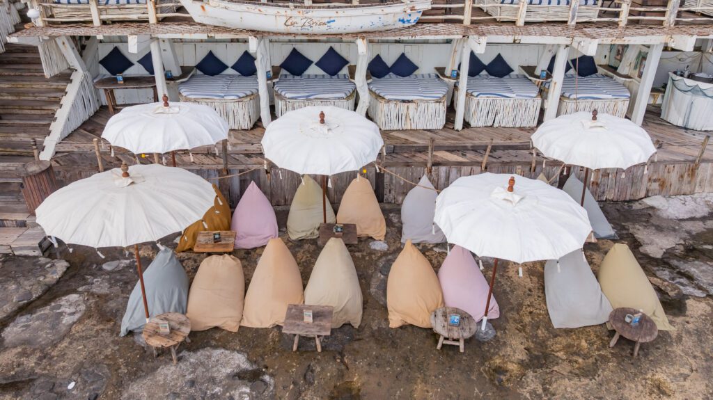 Nestled on the foreshore of Echo Beach, La Brisa is a visual and sensory delight. Expertly hand-decorated with reclaimed wood from over 500 old fisherman boats, the venue blends rustic artistry with coastal charm. The gentle sea breeze, panoramic shoreline views, and authentic Balinese hospitality create a unique and soothing atmosphere that makes every visit special.